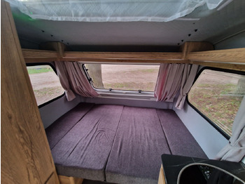 oś hamowaną, urządzenie najazdowe, kuchnię gazową lub na kartusze i zlewozmywak, meble ze sklejki, okna podwójne barwione , zasłony w oknach (tkanina do wyboru wg wzornika), materace i oparcia , lodówka kompresorowa 57L, stopień wejściowy fiamma, lampa przedsionka LED obok drzwi, oświetlenie wewnętrzne LED, gniazdko 230V pod/na blacie, zasilacz 12v (z funkcją 7 fazowego ładowania akumulatora) BC-20 PRO 20A, podłączenie do akumulatora, zbiornik wody 10L,