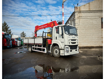 Бортовой грузовик ISUZU 4x2 дв 151kw гп 10 тонн c кму VIGRUS SHS2505 гп 10т 5 секций 17.3м кузо