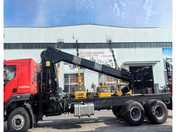 Автомобиль оснащён КМУ SQS200-5T с отрицательным углом грузоподъёмности 8 тонн и стрелой длиной 18,1 метра, что позволяет эффективно перемещать и устанавливать грузы на значительной высоте. Дополнительные элементы, такие как алюминиевые боковые защитные экраны и задние опоры, повышают безопасность и устойчивость грузовика.
