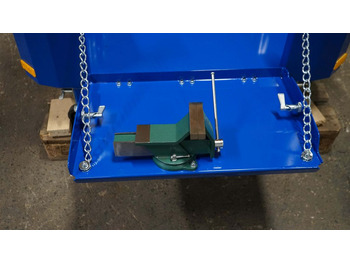> Serienmäßig ausklappbare Werkbank mit Schraubstock