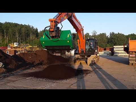 Это роторный ковш для просева сыпучих материалов - грунта, торфа, глины, угля, компоста.