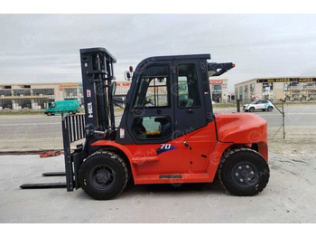 Погрузчик оснащён дизельным двигателем и рассчитан на грузоподъёмность 7 тонн, что позволяет эффективно работать с массивными грузами. Мачта обеспечивает высоту подъёма до 7 метров, благодаря чему техника подходит для работы на складах с высокими стеллажами. Машина оборудована закрытой кабиной с отопителем, что создаёт комфортные условия для оператора при эксплуатации в холодное время года и позволяет использовать погрузчик как в помещениях, так и на открытых площадках.