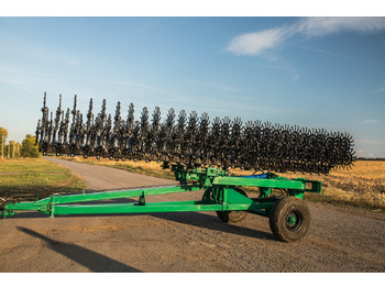 Состоит из трех частей: транспортная гидравлическая сцепка-носитель и две навесные мотыги шириной захвата по 6м. на трехточечной навеске.