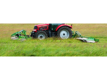 Kosiarka dyskowa Pronar PDF 300C czołowa ze spulchniaczem to nowoczesna, zbudowana w oparciu o najnowsze materiały i technologie kosiarka. Nowoczesna stylistyka, zwarta, mocna a zarazem lekka konstrukcja, z dużym zakresem kopiowania (510 mm licząc od pozycji pracy: w górę 270 mm i w dół 240 mm). Kopiując teren, listwa tnąca ustawia się pod kątem +7 i -6 w stosunku do gruntu. Taka praca zawieszenia zapewnia czyste i estetyczne cięcie oraz właściwą wysokość koszenia. Ciągnik do współpracy z kosiarkami czołowymi powinien być wyposażony w przedni TUZ i WOM oraz posiadać (z przodu) jedną sekcję hydrauliczną. Do napędu kosiarki wystarczy ciągnik o mocy 60 KM lub 75KM.