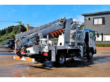Базой служит шасси ISUZU 4×4 с двигателем мощностью 151 kW, обеспечивающим устойчивую работу оборудования и проходимость на трудных участках. Установлена крановая установка WANBANG SQS350DZ грузоподъёмностью 3,5 тонны с 3 секциями и стрелой длиной 14 м с возможностью работы с отрицательным углом, что расширяет диапазон рабочих положений. В комплектацию входит бур длиной 10 м диаметром 400 мм для выполнения буровых работ, а также корзина для проведения высотных операций.