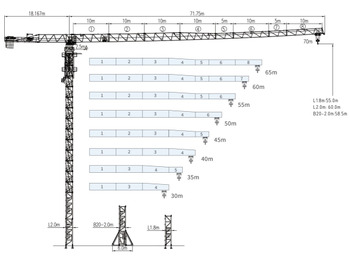 Башенный кран DAHAN DH208(7015) г/п 10т, без оголовка, высота 85м, длина стрелы 60м, гп на конц