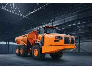 Карьерный шарнирно-сочлененный самосвал Тонар Т-45 способен перевозить сыпучий грунт весом до 45 тонн при объеме кузова 21/26 кум. м. Данный ШСС обеспечивает сопоставимую с зарубежными лидерами производительность за рейс при более низкой стоимости владения.