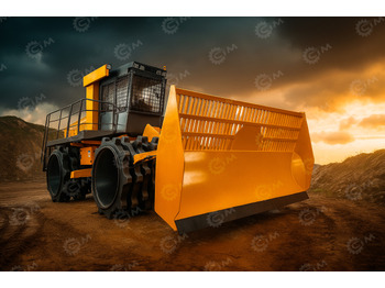 Машина оснащена мощным дизельным двигателем, обеспечивающим достаточную тягу и надёжность работы в тяжёлых условиях. Эксплуатационная масса составляет более 30 тонн, что позволяет достигать высокой степени уплотнения. Компактор оборудован массивными металлическими колёсами с зубчатыми выступами, которые врезаются в толщу отходов и обеспечивают плотное и глубокое уплотнение. На передней части установлен мощный отвал для разравнивания и перемещения массы мусора или грунта. Кабина оператора защищена усиленными решётками и отличается хорошим обзором, создавая безопасные условия работы. Прочная конструкция, надёжная гидравлическая система и усиленные узлы ходовой части рассчитаны на длительную эксплуатацию при высоких нагрузках.