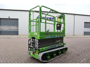 FRONTEQ FS0610T 8m Electric Tracked Scissor Lift. CE (Declaration of Conformity) This machine has a valid inspection and can be sold with warranty. Inform about our conditions! Manufacturer: FRONTEQ Typ: FS0610T Serial nr: FST102100100S Building year: 2021 Fuel: Electric Length (Platform unextended) 1.80 m Platform Width: 0.78 m Ground Clearance: 0.14 m Lift Capacity: 200 kg Turning Radius (Inside) 0 Turning Radius (Outside) 0.75 m Hydraulic Tank Capacity 0.7 gal 2.5 L Overall Weight: 1.620 kg PLATFORM Extended platform Folding guardrails Self-locked swing gate half Height SAFETY Pothole protection Motion alarm Tilt level sensor with an audible alarm Automotive-style horn Descent protection alarm Dual flashing beacons Manual braking release Safety arm Emergency lowering Oil hoses explosion-proof Overload protection system Forklift pockets Emergency stops at both platform and ground controls DRIVE Auto brake system Proportional controls for lift and drive functions Drive speed interlock limits speed while elevated