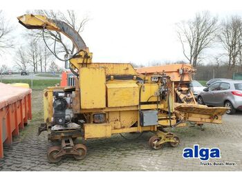 Eisenbahngleise, Hackmaschine, Schredder, Antrieb über einen 4 Zyl. Hatz Dieselmotor, Einzugskette ca. 2000 mm, Hydraulisch in der Neigung verstellbar, Einlaufschacht ca. 35 cm breit, Auslauf hydr. schwenkbar, Kupplung, Gleisbreite ca. 1430 mm