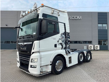 MAN TGX 26.500 6x2/2 BLS Pusher trækker Flot opbygget trækker! Luft forskydelig skammel - stor alu afdækning over hele chassis + chassis skørter - 480 ltr. dieseltank løftbar mellem aksel - Alcora poleret alu fælge XXL førerhus - motor / kabinevarmer - klimaanlæg - 2 køjer - tv - lædersæder - Walkie - Kaffemaskine - Omformer - Køleskab - Rotorblik på taget - Horn på taget - fjernlygter - blitzlys - LED arbejdslys Fremstår i meget fin stand - pt lokation Horsens Kontakt os for mere info