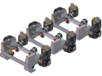 Ось и запчасти для Прицепов 3-х осный осевой агрегат 90424 с пневморычажной подвеской, 9 тонн, односкатная ошиновка